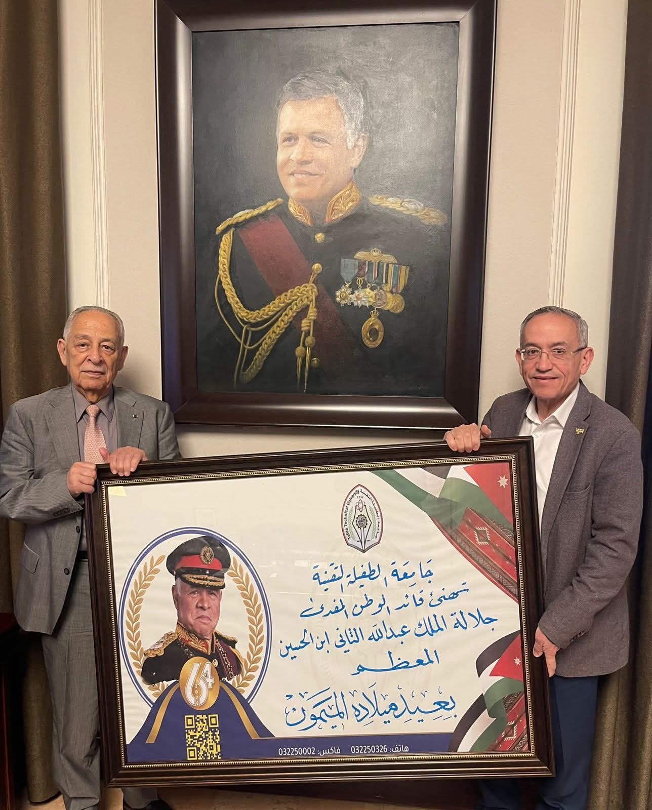 وفي لفتةٍ تعبّر عن عمق الانتماء والولاء، قدّمت أسرة جامعة الطفيلة التقنية إهداءً رمزيًا بهذه المناسبة، يجسّد معاني الوفاء للقيادة الهاشمية، ويعكس الاعتزاز بالنهج الملكي الحكيم، مؤكدين أن هذه المبادرة تأتي تجديدًا للعهد والبيعة، وترسيخًا لقيم العمل المخلص في ظل الراية الهاشمية المظفّرة.