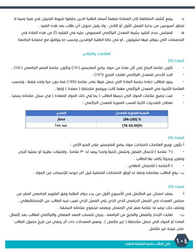 ب -لغايات الإنذار والفصل والتخرج من الجامعه ،يجري احتساب المعد الفصلي والتراكمي للطالب بعد إكتمال