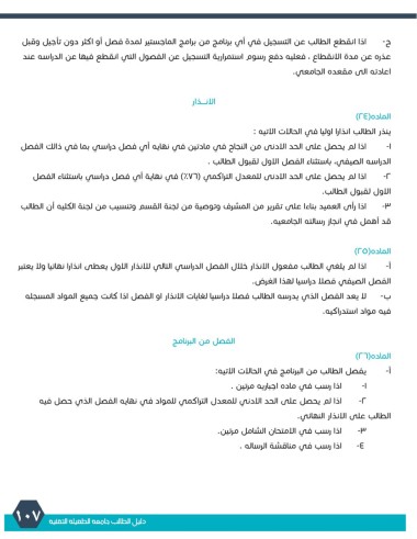 -2اذا لم يحصل على الحد الادني للمعدل التراكمي للمواد في نهايه الفصل الذي حصل فيه