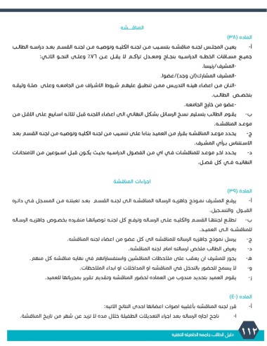 د -يحـدد اخـر موعـد للمناقشـات فـي اي مـن الفصـول الدراسـيه بحيـث يكـون قبـل اسـبوعين مـن الامتحانـات