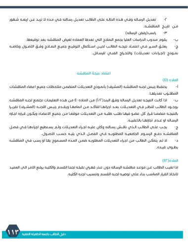 - 2تعديـل الرسـاله وفـي هـذه الحالـه علـى الطالـب تعديـل رسـالته فـي مـده لا تزيـد عـن اربعـه شـهور