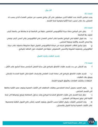 هـ -يتخذ المجلس القرارات بقبول الطلبة حسب الأصول ويقوم العميد بإعلان نتائج القبول للطلبة وتعمميها