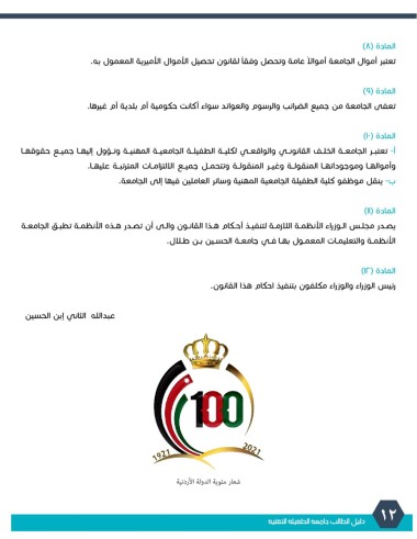 الأنظمـة والتعليمـات المعمـول بهـا فـي جامعـة الحسـين بـن طـال.
