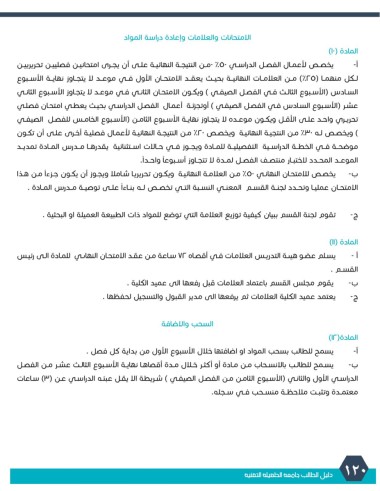 ج -تقوم لجنة القسم ببيان كيفية توزيع العلامة التي توضع للمواد ذات الطبيعة العميلة او البحثية .