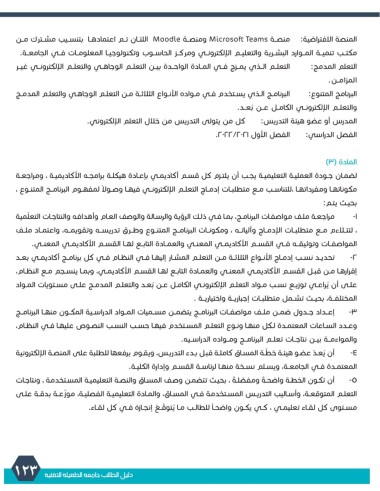 علـى أن ُيراعـي توزيـع نسـب مـواد التعلـم الإلكترونـي الكامـل عـن ُبعـد والتعلـم المدمـج علـى مسـتويات المـواد