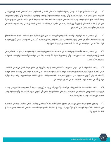 -25يحـرص عضـو هيئـة التدريـس علـى ُحضـور الطلبـة اللقـاءات كّلهـا مـن بدايتهـا حتـى نهايتهـا ،وعلـى إفادتهـم