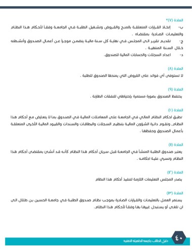 النظــام هــذا لأحــكام وفقــًا الجامعــة فــي الطلبــة وتشــغيل والقــروض بالمنــح المتعلقــة القــرارات (*)7 المادة