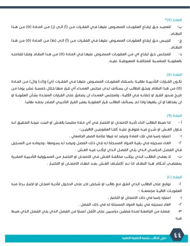 ت -لا يعفـى الطالـب الـذي يرتكـب مخالفـة الغـش فـي الامتحـان او الاختبـار مـن المسـؤولية التأديبيـة المقـررة