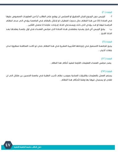 عليهـا المنصـوص العقوبـات مـن أيـًا الطالـب علـى يوقـع ان المجلـس او التحقيـق للجـان الرجـوع دون ()20 المادة