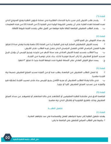 للجامعـة الحـق فـي ملاحقـة الطلبـة المقترضيـن أو كفلائهـم فـي حالـة امتناعهـم أو تقصيرهـم عـن سـداد المبلـغ