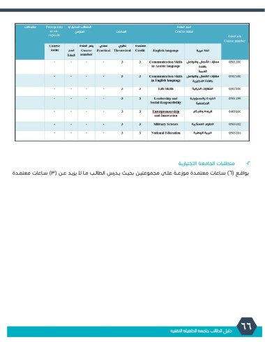 -2متطلبات الجامعة الاختيارية بواقـع ( )6سـاعات معتمـدة موزعـة علـى مجموعتيـن بحيـث يـدرس الطالـب مـا لا يزيـد عـن ( )3سـاعات معتمـدة 66 دليل الطالب جامعة الطفيلة التقنية