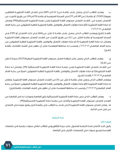 ج -يعفـى الطالـب الـذي يحصـل علـى شـهادة امتحـان مسـتوى اللغـة الانجليزيـة الدوليـة( )IELTSبدرجـة لا تقـل