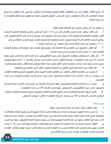 ز -لا يفصـل مـن الجامعـة الطالـب الوافـد غيـر الناطـق باللغـة العربيـة خـال الفصـول الدراسـية الثلاثـة الأولـى