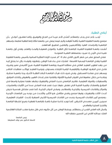التقنيـة وهـي الجامعـة الرسـمية التاسـعة؛ لتشـارك فـي بنـاء هـذا الوطـن ،وتطـوره ،ولترفـده بـكل مـا يحتـاج إليـه