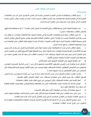 الأردنيـة أو أي جامعـة تعتـرف بهـا الجامعـة بعـد تقديـم الطالـب مبـررات لذلـك ،علـى أن يتقـدم بطلـب تأجيـل دراسـة
