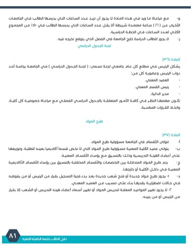 و -مـع مراعـاة مـا ورد فـي هـذه المـادة لا يجـوز أن تزيـد عـدد السـاعات التـي يدرسـها الطالـب فـي الجامعـات