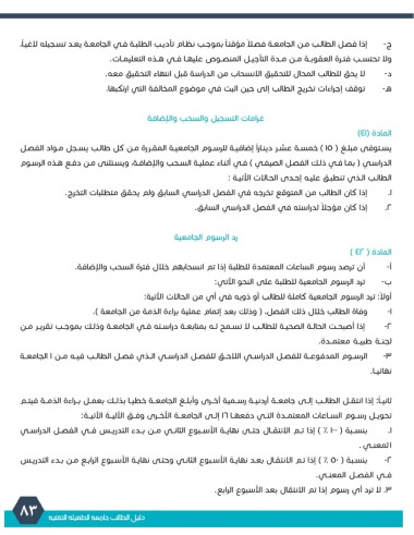ج -إذا فصـل الطالـب مـن الجامعـة فصـ ًا مؤقتـًا بموجـب نظـام تأديـب الطلبـة فـي الجامعـة يعـد تسـجيله لاغيـًا،