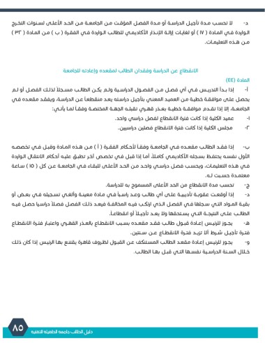 د -لا تحسـب مـدة تأجيـل الدراسـة أو مـدة الفصـل المؤقـت مـن الجامعـة مـن الحـد الأعلـى لسـنوات التخـرج