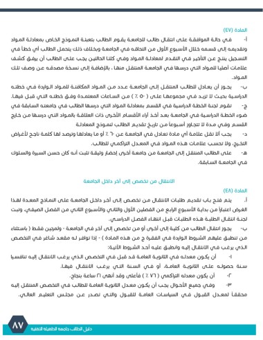 هـ -علـى الطالـب المنتقـل إلـى الجامعـة مـن جامعـة أخـرى إحضـار وثيقـة تثبـت أنـه كان حسـن السـيرة والسـلوك