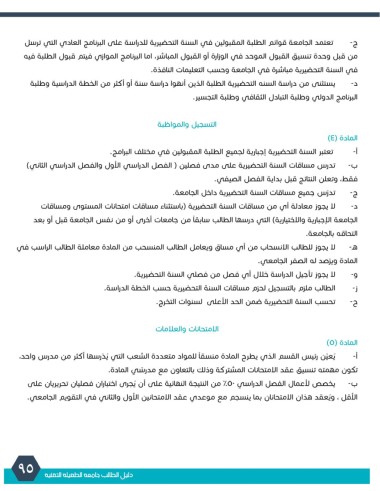 ز -الطالب ملزم بالتسجيل لحزم مساقات السنة التحضيرية حسب الخطة الدراسة.