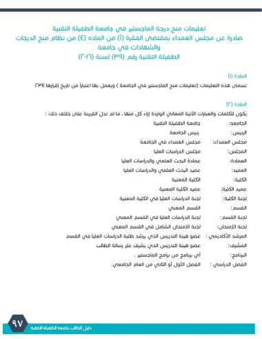 تعليمات منح درجة الماجستير في جامعة الطفيلة التقنية